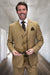 Men's Designer Wool Vested Windowpane Plaid Suit in Bronze