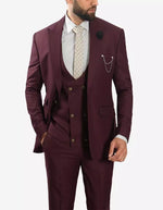 Slit Pockets Key Features Jacket: - Solid peak lapel - Skinny fit - Two button front closure - Two side flap pockets Vest: - Solid textured - Collared vest - Double breasted - Three button closure Pants: - Solid - Skinny fit - Mid-rise waist - Zip-up fly closure - Slit pockets Product Description Experience modern elegance with this stylish menswear three-piece combo. The sharp peak lapel jacket and two-button front closure offer a sophisticated fit. Made from a solid fabric, it features two side flap pockets for added convenience. The matching collared vest is double breasted and features a solid textured material and three button closure. The pants sport a mid-rise waist and a zip-up fly closure for a comfortable fit. Crafted from a solid fabric and featuring slit pockets, this menswear combo ensures you look sharp and classy.