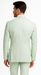 The jacket is designed with a single-breasted cut, peak lapels, structured shoulders, and flap pockets, ensuring a sharp and polished silhouette. The light green hue conveys freshness and individuality while remaining refined enough for formal occasions. The tone-on-tone shadow stripe pattern enhances the visual appeal of the fabric, creating subtle dimension without overwhelming the clean lines of the suit.